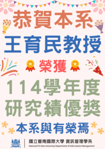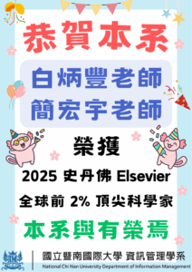 國立暨南國際大學資訊管理學系 > 訊息公告-全部 訊息公告 全部 招生 課程/演講/活動 競賽 榮譽事蹟 在學生 本系老師 畢業系友 獎學金 徵才 / 實習 媒體報導 全部 恭喜本系簡齊君、賴霈宸同學受國立教育廣播電臺邀請參與【幸福南臺灣】節目訪問 2025 年 10 月 11 日 Read More » 【轉知】國立臺北商業大學辦理『2025 AI人工智慧產學發展論壇』 2025 年 10 月 8 日 Read More » 【英國 Middlesex University London 學/碩 雙聯學制說明會】 2025 年 10 月 2 日 Read More » 資訊管理學系114學年度迎新宿營 2025 年 9 月 30 日 Read More » IMP2025第30屆國際資訊管理暨實務研討會暨育秀AI數位科技研創論⽂獎 2025 年 9 月 26 日 Read More » 恭賀本系王育民教授榮獲114學年度研究績優獎 2025 年 9 月 26 日 Read More » 【轉知】2026 年新加坡商鈦坦科技實習招募 2025 年 9 月 24 日 Read More » 【系辦轉知 】聖約翰科技大學舉辦「2025智慧商業與管理學術研討會」 2025 年 9 月 23 日 Read More » 恭賀!!本系白炳豐老師和簡宏宇老師榮獲2025 史丹佛 Elsevier 全球前 2% 頂尖科學家 2025 年 9 月 22 日 Read More » 【轉知】2025 ITA 智慧旅遊程式創意提案競賽 2025 年 9 月 16 日 Read More » 【轉知】中研院人文社會科學研究中心誠徵編制內研究技術人員 2025 年 9 月 16 日 Read More » 本系陳小芬老師參與暨大水沙連學院師生赴日交流活動,擴展地方創生國際合作 2025 年 9 月 15 日 Read More » 2025雲創盃 AI x ESG 創新實作競賽 2025 年 9 月 12 日 Read More » 【日月光環基會】第十二屆環保學術碩博士論文獎助 2025 年 9 月 9 日 Read More » 資管系協辦【ARG實境解謎活動-Lost 2 – Fake Time ARG】 2025 年 9 月 9 日 Read More » « 上一頁 頁面1 頁面2 頁面3 頁面4 頁面5 下一頁 »