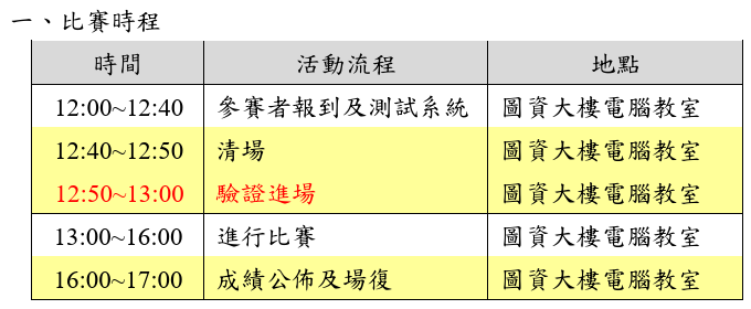 4. 競賽開始後,遲到10分鐘者不得進場。