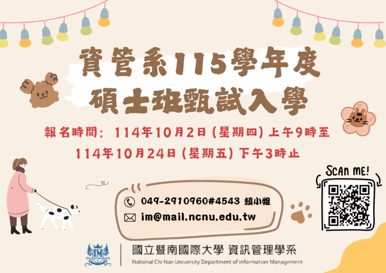 🙌115學年度碩士班甄試入學已開始報名囉!🙌